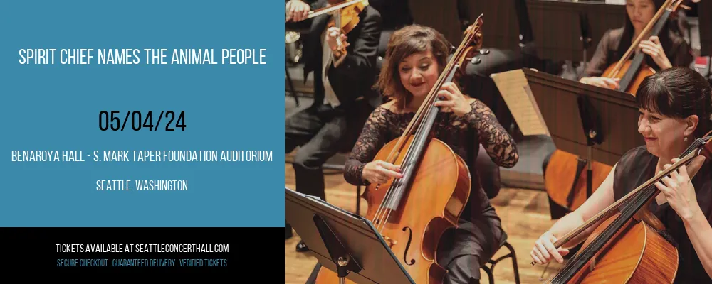 Don't just watch this phenomenon – sing it, shout it, and buy your passes before the spotlight dims! Book your seats for Spirit Chief Names The Animal People at Benaroya Hall on Saturday 4th May 2024 by hitting the “Get Tickets” link above now!